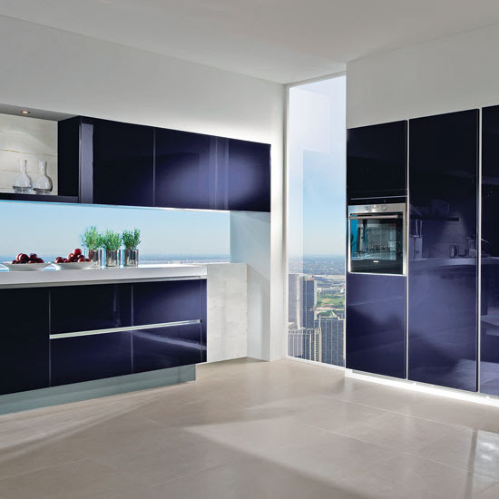 Purple Gloss Kitchen Cabinets. We got information from each image that we get, including set size and resolution. Omitting warmth and personality, the rich purple hue effortlessly contrasts the soft cream doors, whilst the cleverly placed lighting illuminates a soft glow that highlights the precise edging of the counter top.